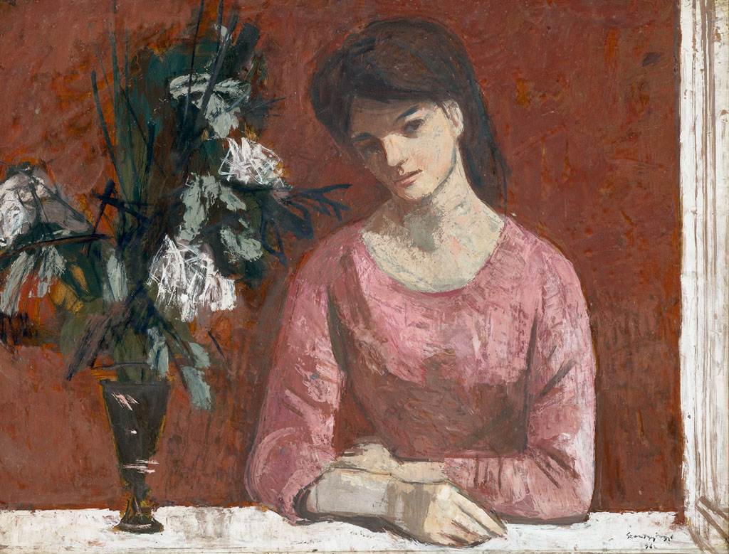 Szentgyörgyi Kornél: Leány virágcsokorral